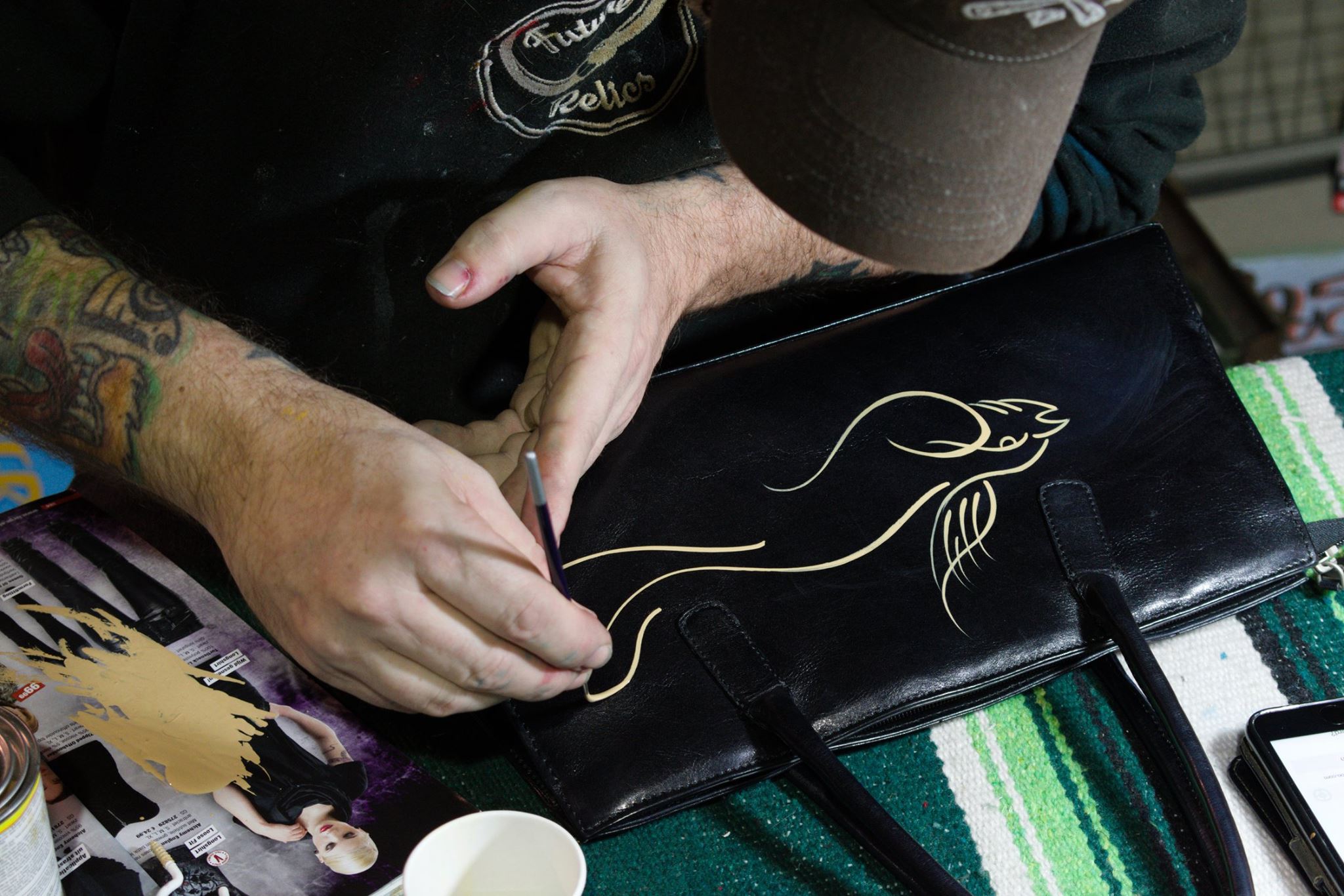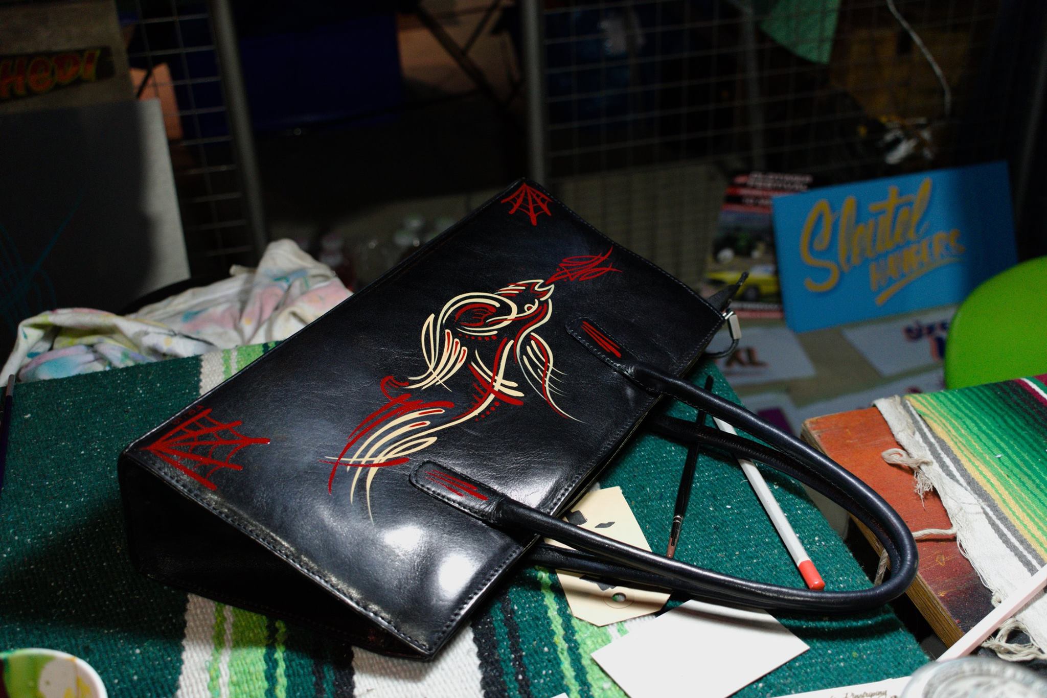 Op een beurs heb ik dit tasje van leuke pinstripes voorzien. Leuke kleine klus die ik vergeten was. Ik kwam dit tegen al bladerend op mijn Facebook . Ik maak deze natuurlijk ook in opdracht, interesse