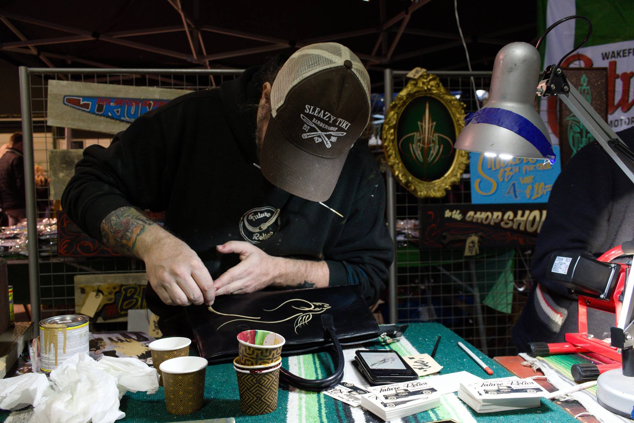 Een klassieke Volkswagen T1 Panel Van voorzien van een handgeschilderd Porsche logo. Door zorgvuldige voorbewerking en gebruik van traditionele schildertechnieken is een strakke, tijdloze uitvoering g