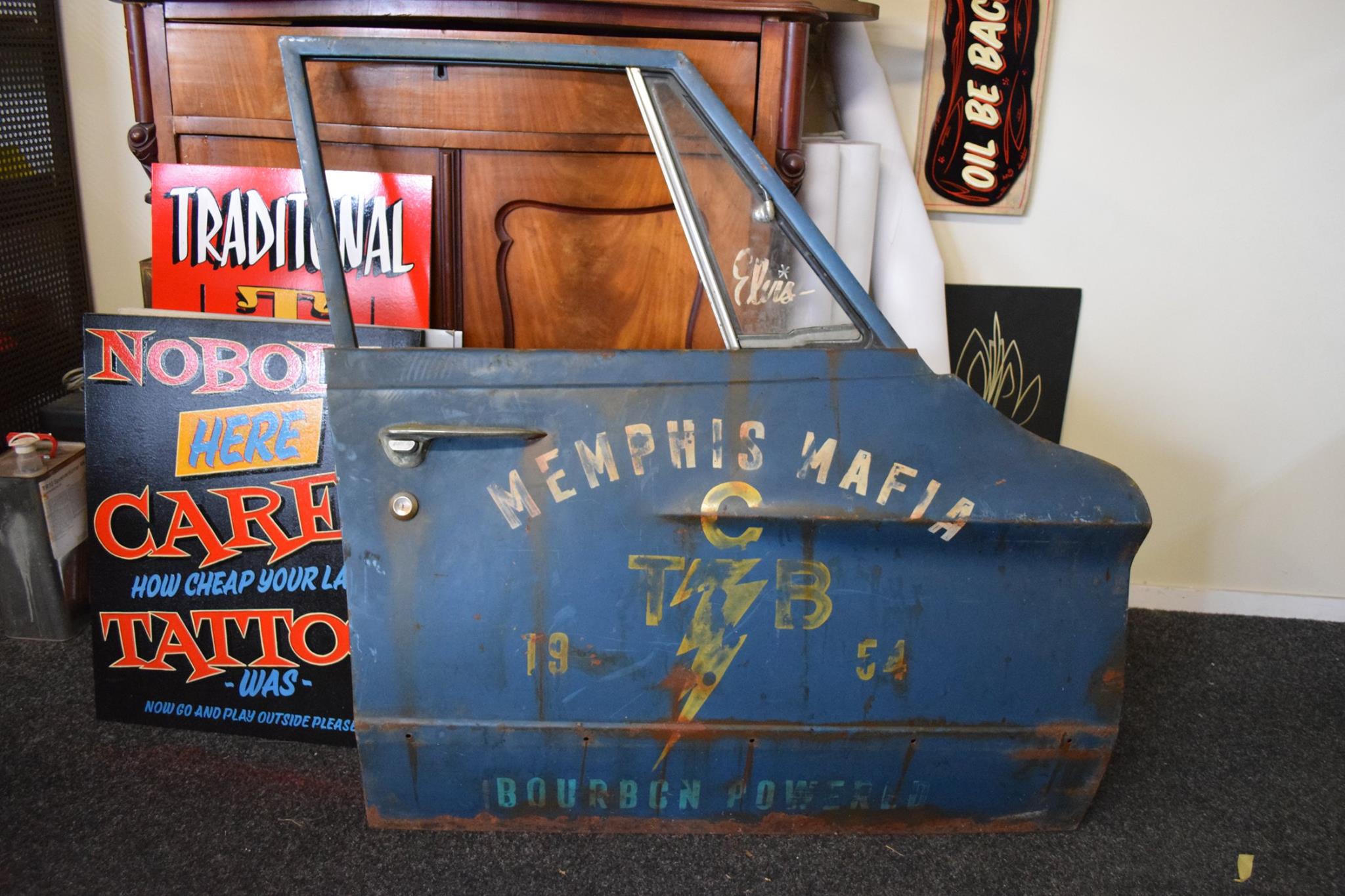 1974 – Plymouth Deur – Memphis Mafia Thema Werkzaamheden Eigen ontwerp en idee. Ghost look gemaakt met diverse technieken Roest toegevoegd