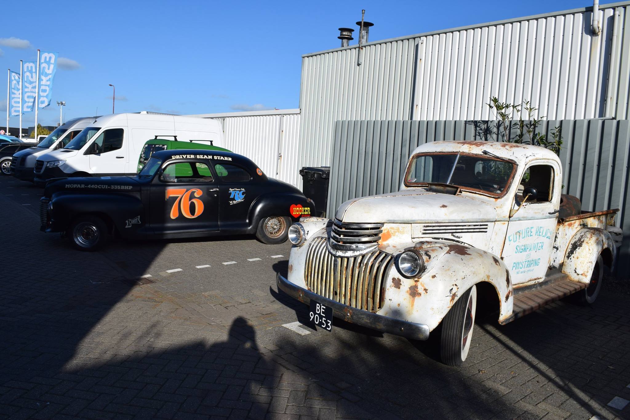 1949 Plymouth – Nascar look Werkzaamheden Wens van de klant was #69 en verder maak je er maar wat moois van. Signpainters Thema it is. Alles ontworpen en bedacht voor de Nascar look Alles met de hand geschilderd Opdrachtgever: carscolacoins.com