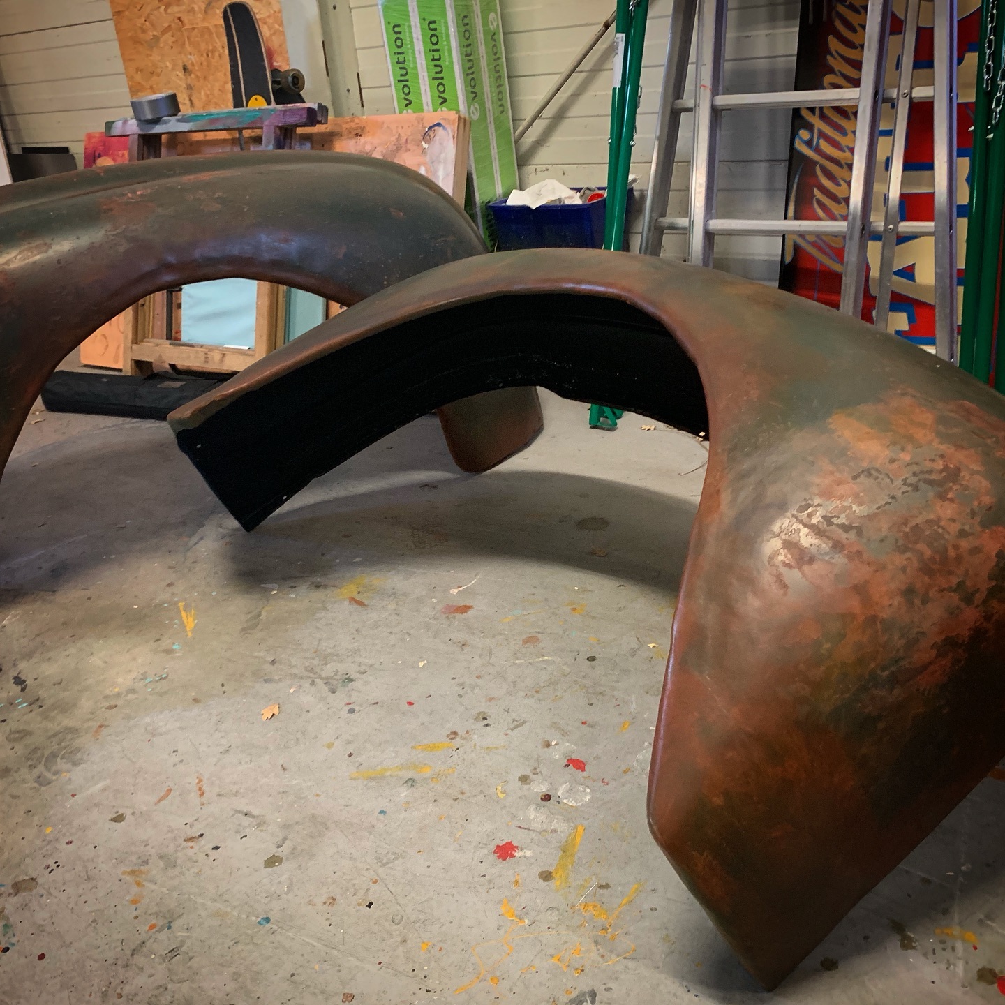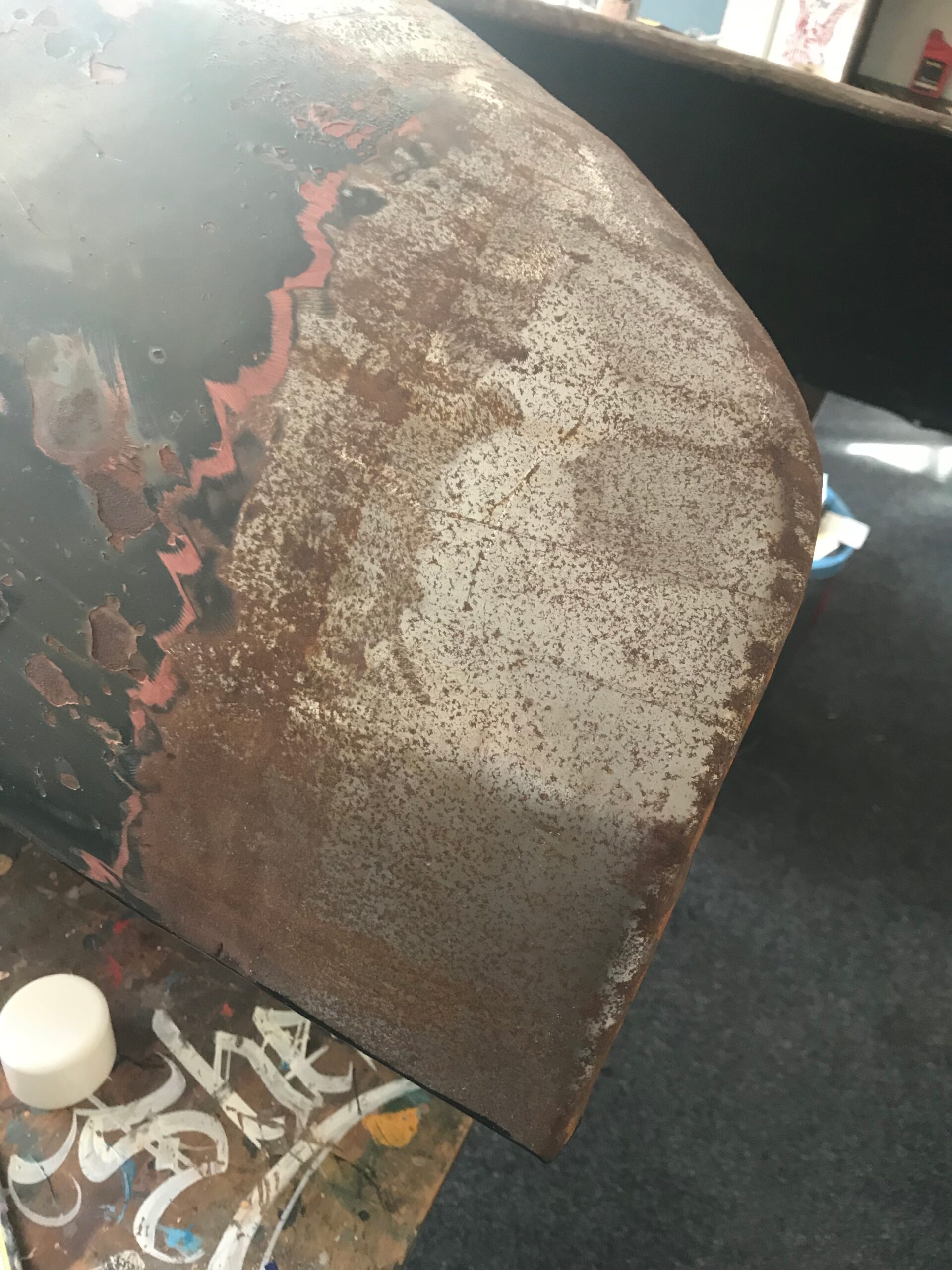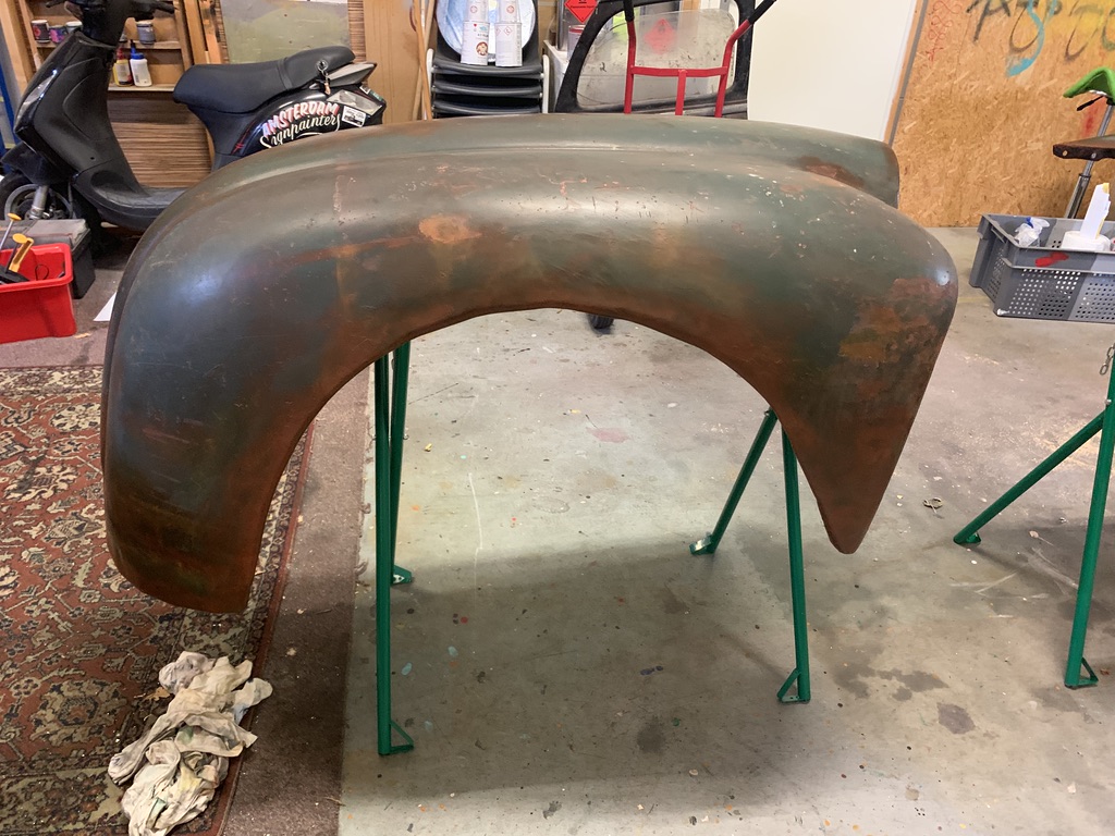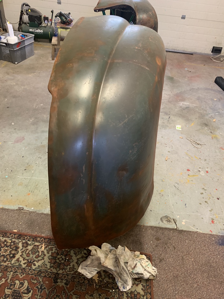 Restauratie roest delen en Roestlook aanbrengen Werkzaamheden: Blanke delen in de Primer, kleur gemengd en aangebracht om aan te sluiten bij oude lak Roest en patina zo aangebracht dat het aansluit bij de oude delen