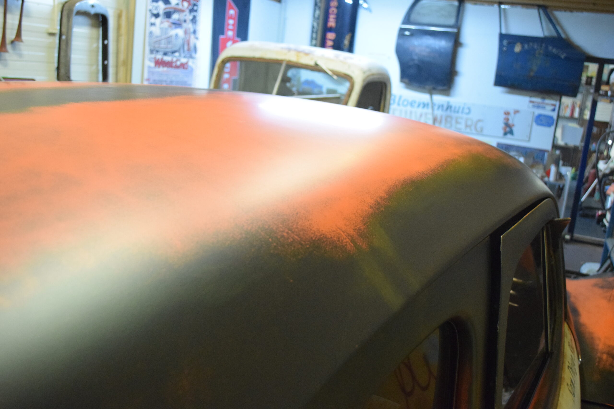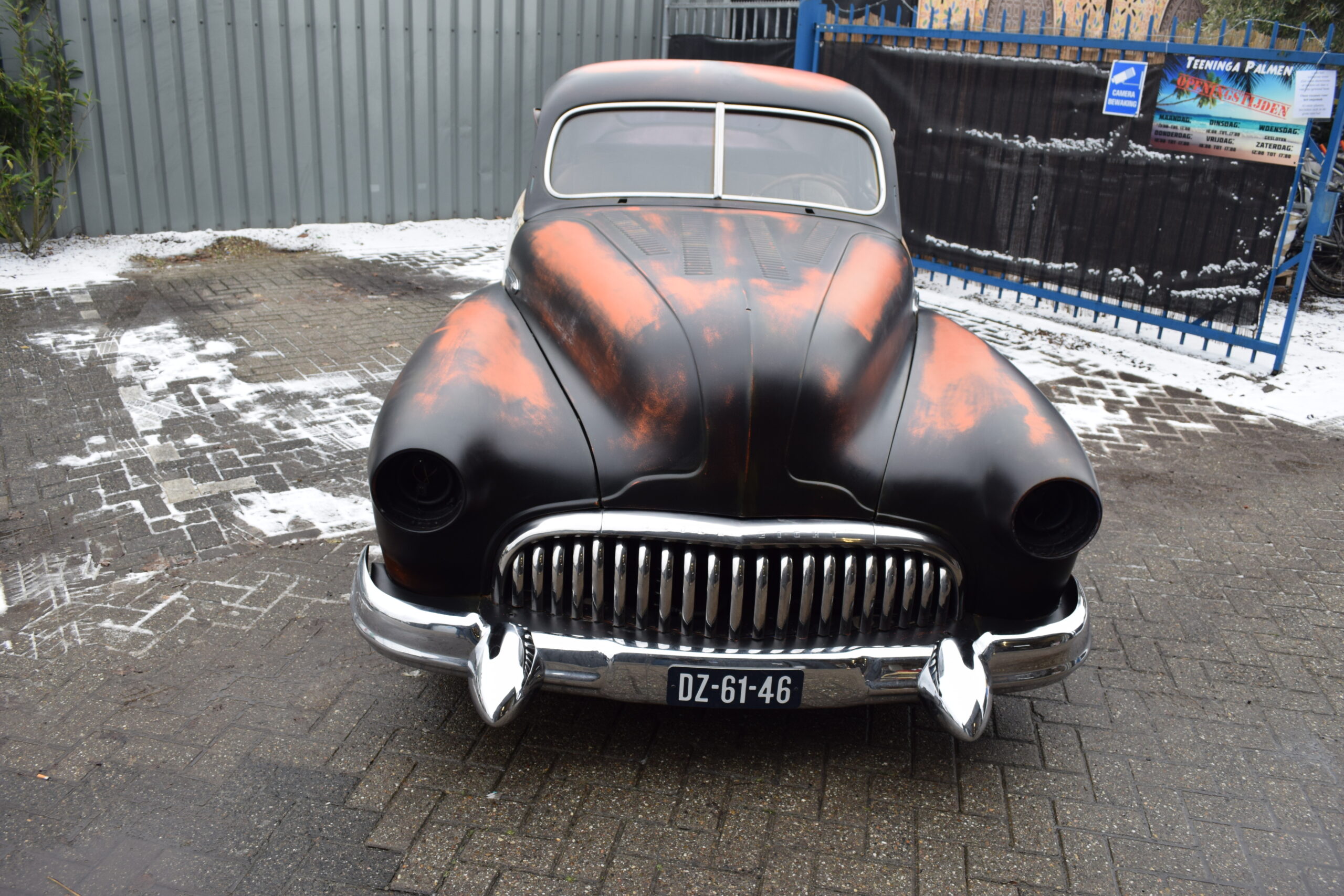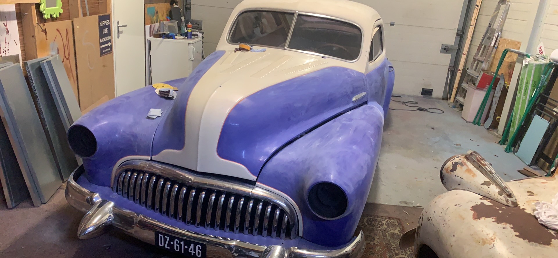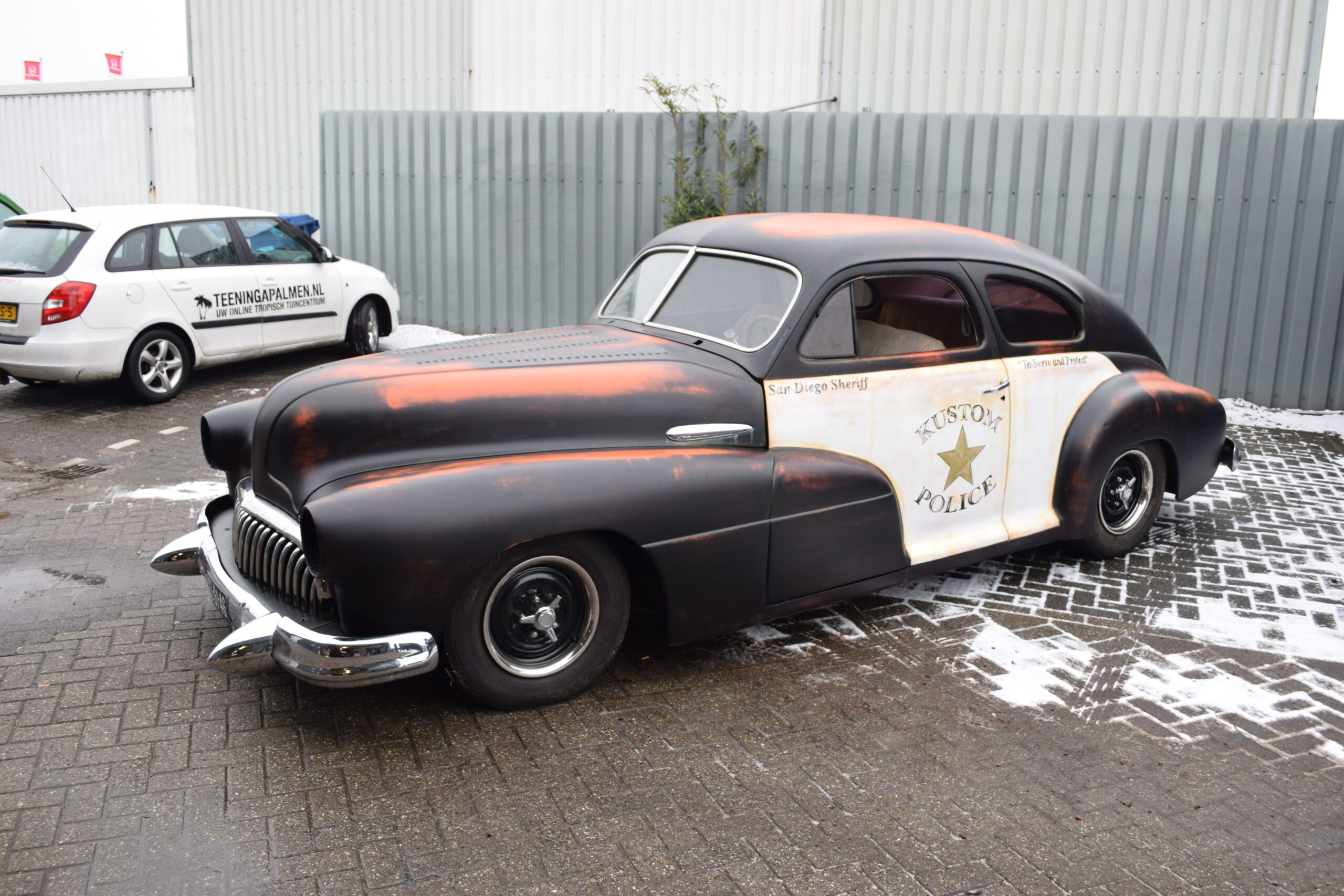 Deze 1947 Buick van USACC uit Veendam had nog een stevig jaren 80 jasje aan. Her en der beschadigd, vervallen en wat gedateerd. De opdrachtgever had een dergelijke auto gezien in California, foto’s gemaakt en de wens uitgesproken de Buick deze look te geven. Maar dan wel met een twist, “maak er maar een politie auto van”. Zijn wens is mijn werk. Zie hier het resultaat.