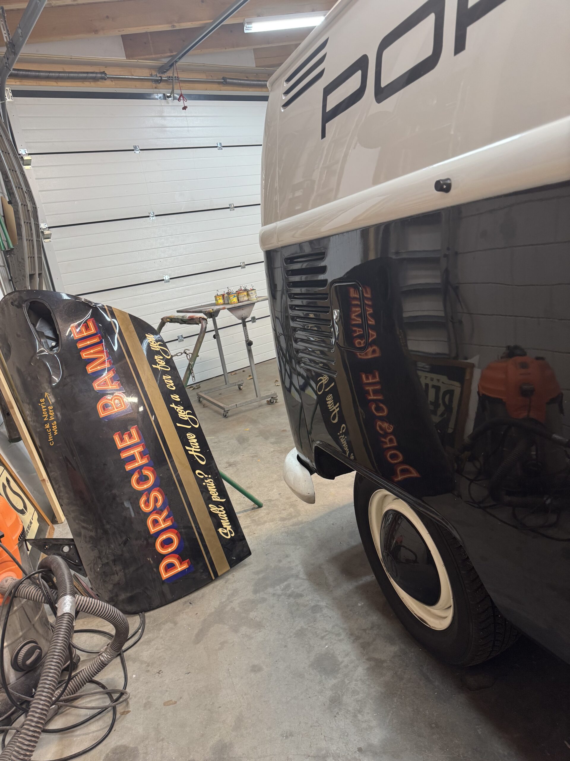 Als ambachtelijk letterschilder en signpainter kreeg ik de opdracht om een Volkswagen T1 Panel Van te voorzien van het iconische Porsche logo. Een project waar precisie, voorbereiding en traditioneel vakmanschap samenkomen.