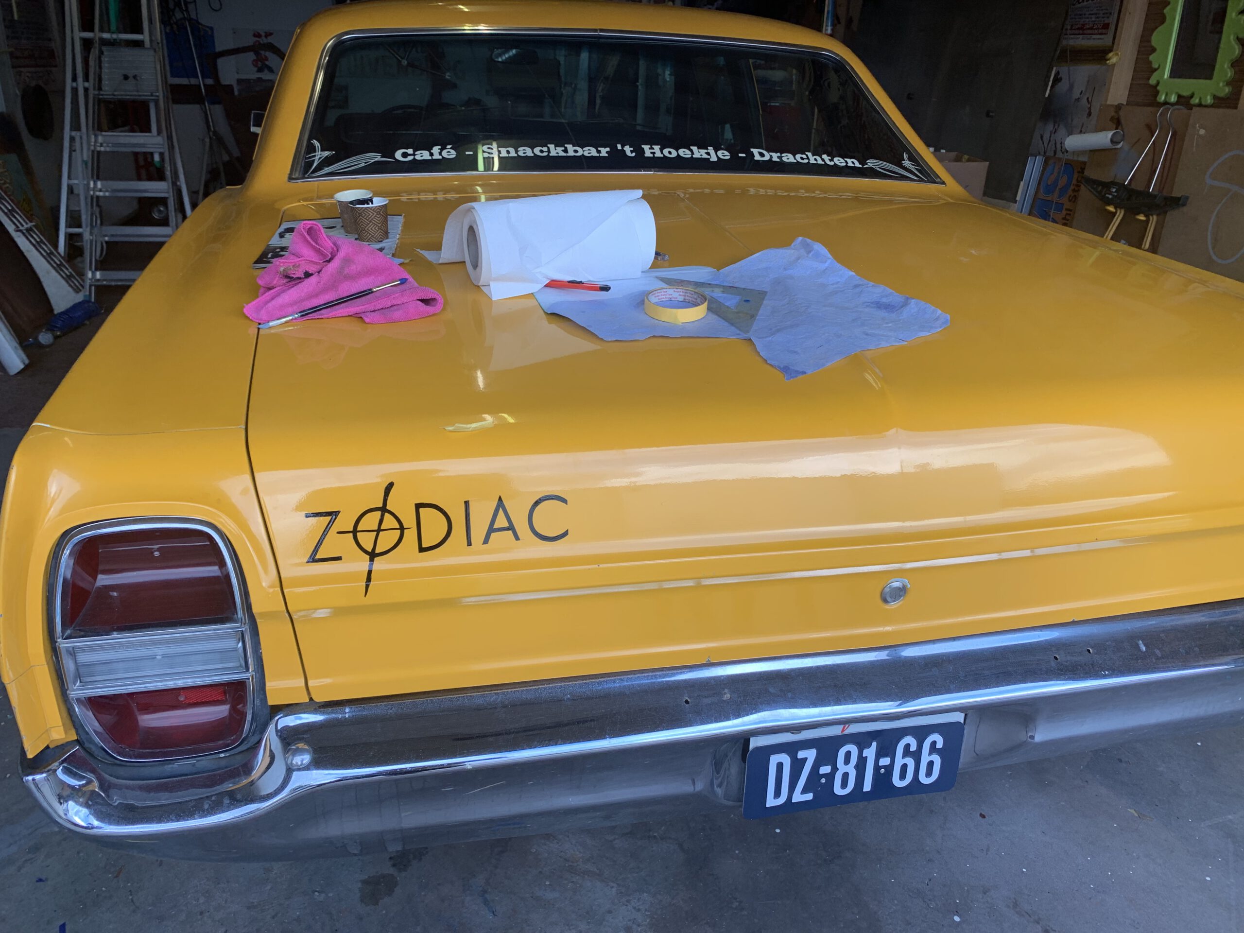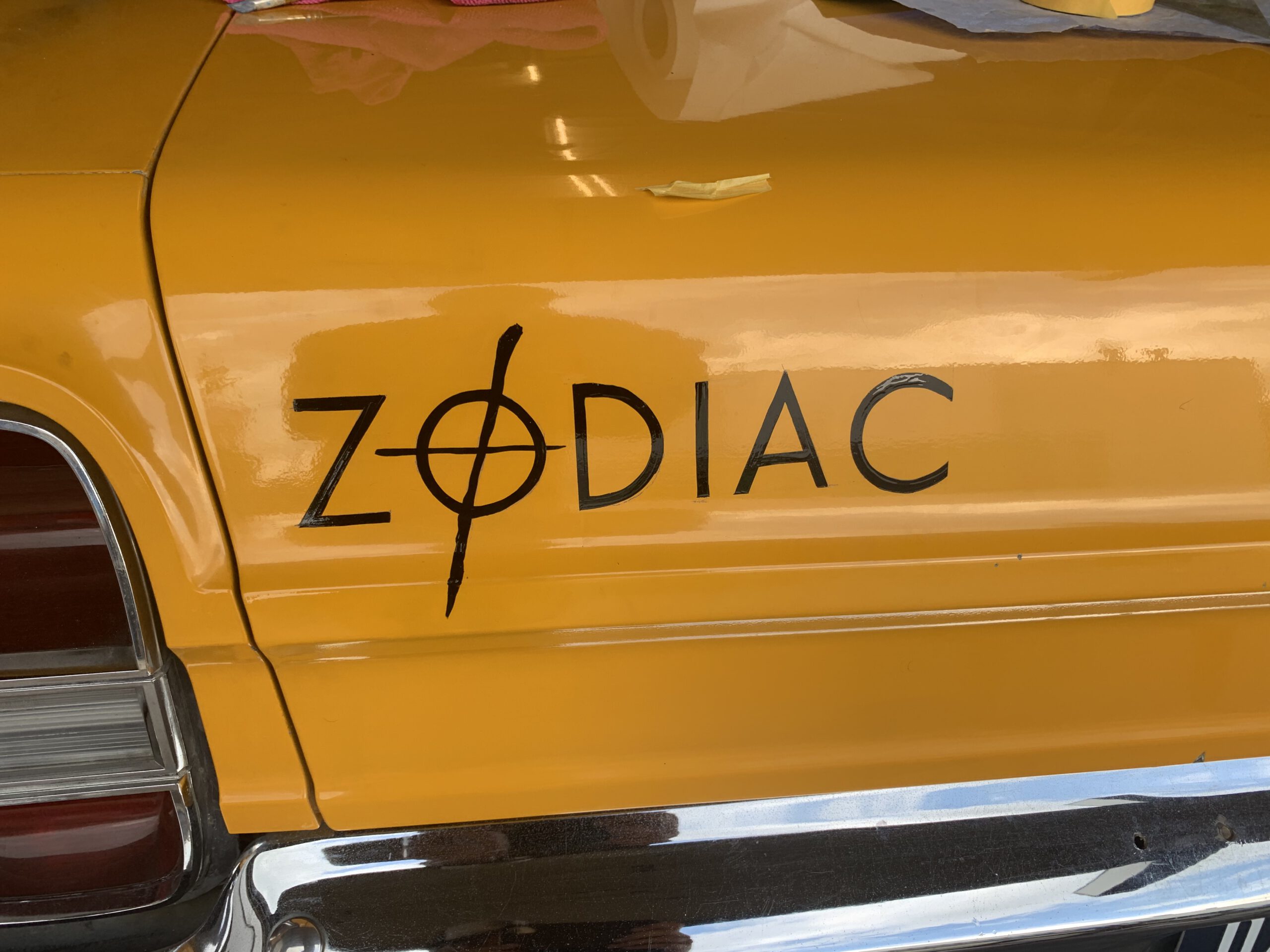 Zodiac Movia CarVoor een klant een aantal dingen toegevoegd op deze originele movie car uit de film Zodiac Werkzaamheden: Logo op de achterkant aangebracht Text op achterraam aangebracht